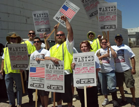 At the rally, hosted by Teamsters Local 386, 572 and 853, participants wore t-shirts emblazoned with artwork that said, “WANTED: Ignacio Guiterrez for Unlawful Acts Against Latino Workers” and carried matching rally signs.